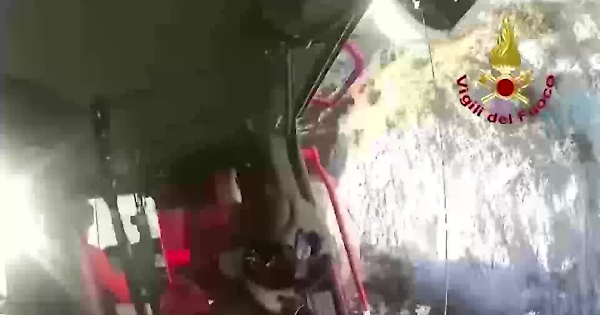 Camoscio impigliato nella parete rocciosa liberato con un elicottero dei vigili del fuoco